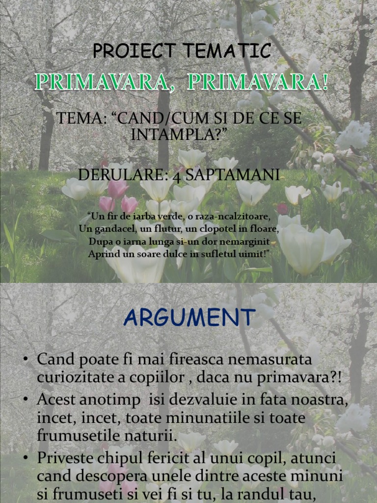 Doc Proiect Tematic Salutare Primăvară Timp Frumos Bine Ai