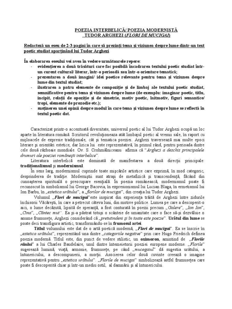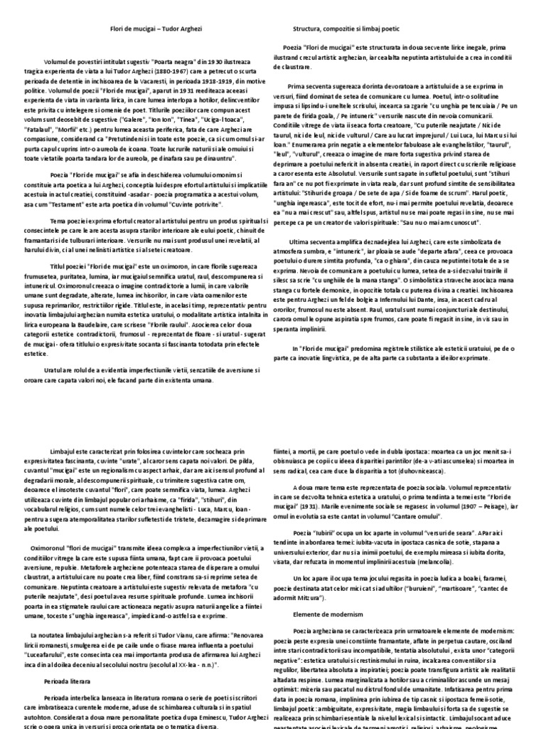 Licenta Poetica Lui Tudor Arghezi In Flori De Mucigai Romana