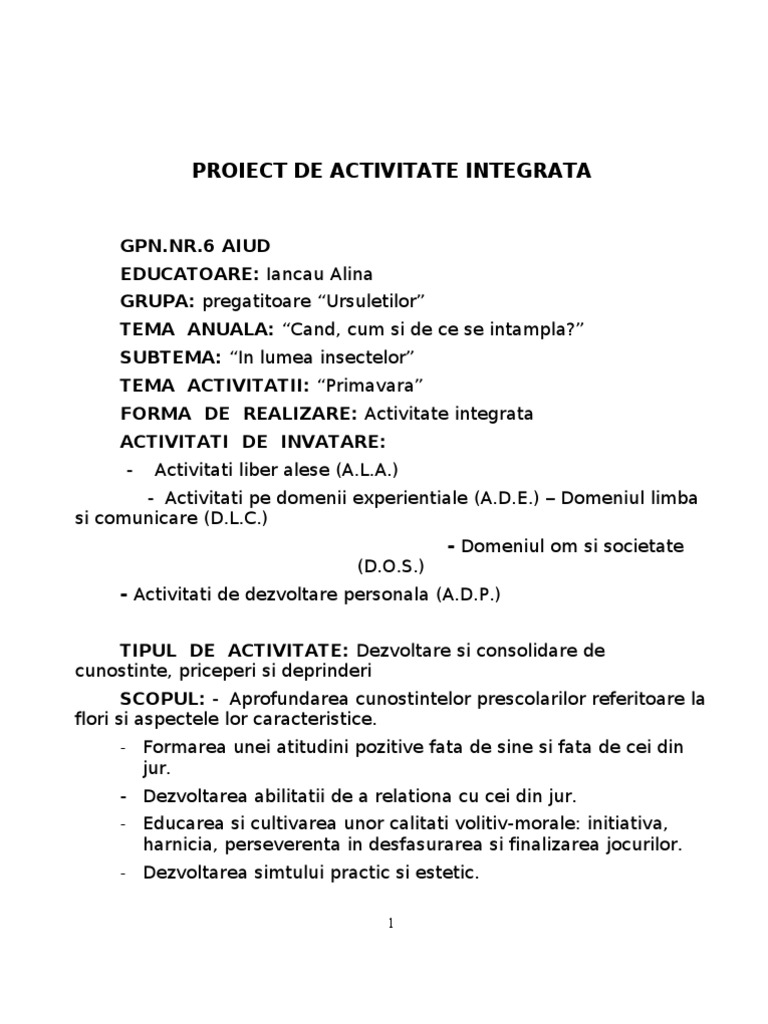 1 Proiect De Activitate Integrata