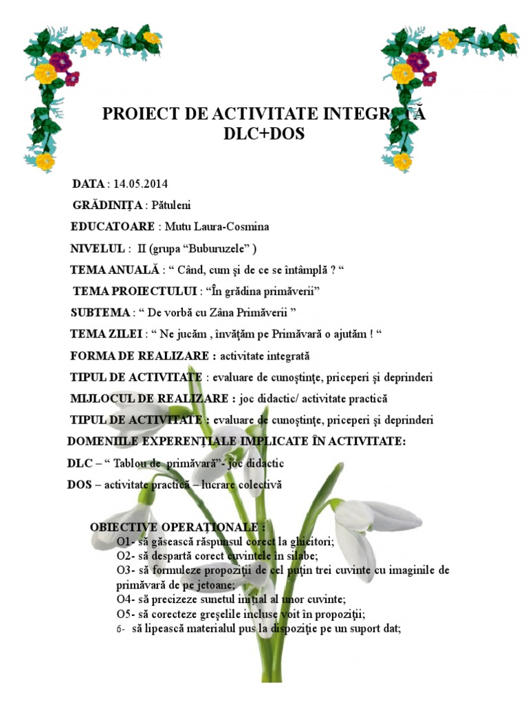 Doc Proiect De Activitate Integrată Diana Andreca Academia Edu