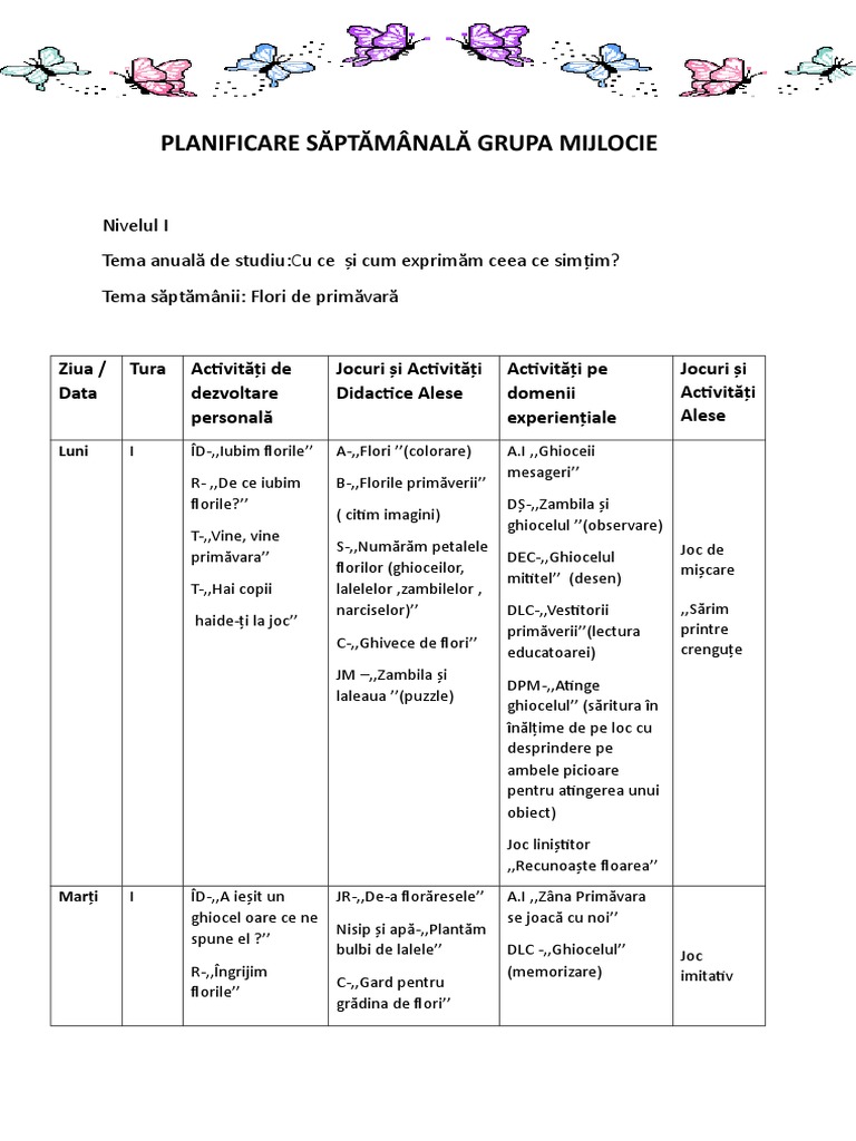 Planificare Flori De Primavara Grupa Mare