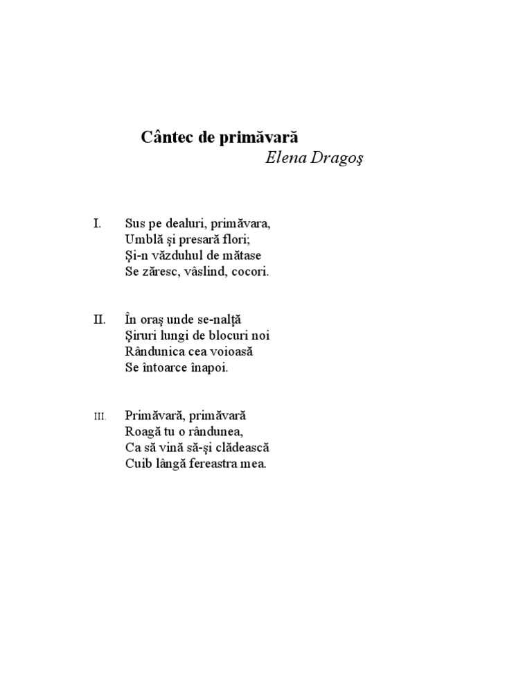 Poezii Despre Primăvară Limba Cultura Si Civilizatie Romaneasca
