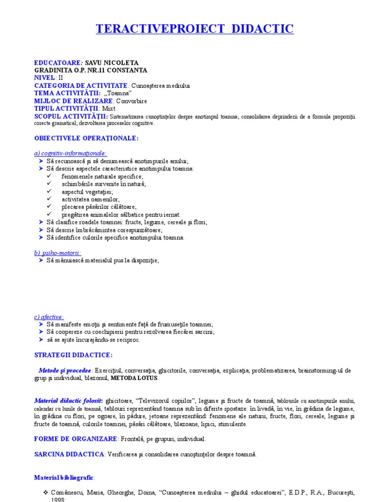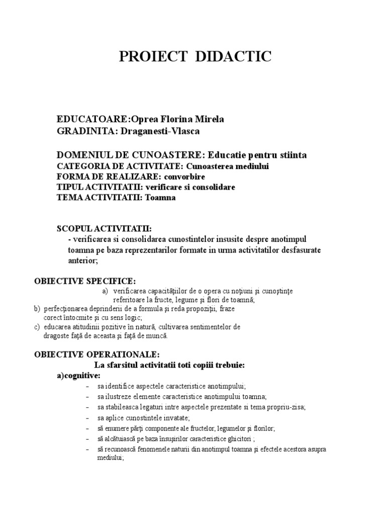 Proiectdidactic Toamna Convorbire Doc