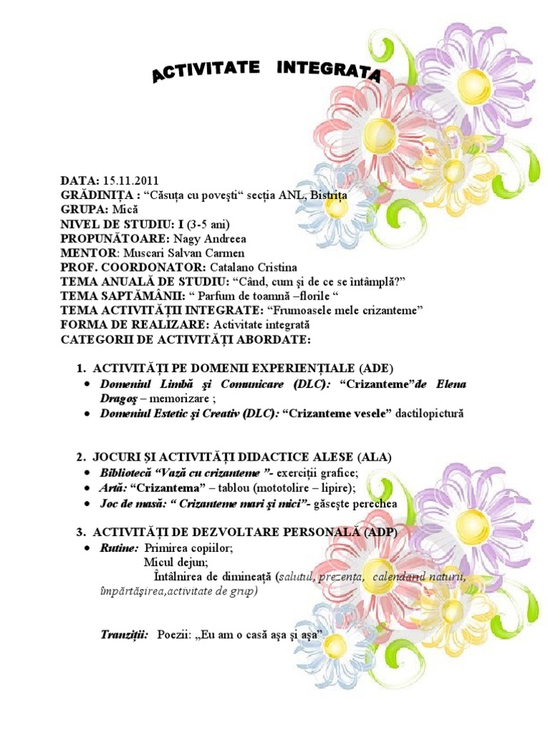 Proiect Didactic Integrat Crizantema