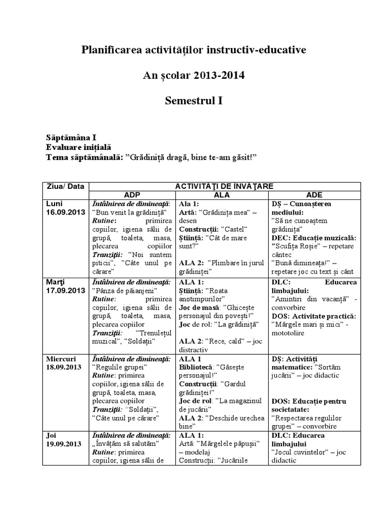 Pdf Planificarea Activităților Instructiv Educative An școlar