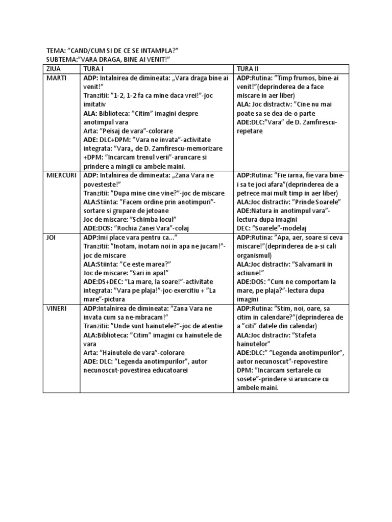 Planificare Vara Draga Bine Ai Venit