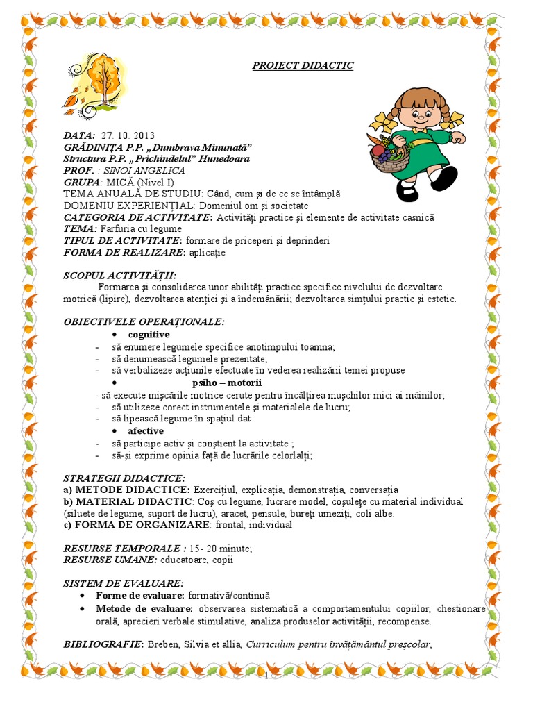 Proiect Proiect Didactic Grupa Mare Hora Florilor De Toamna