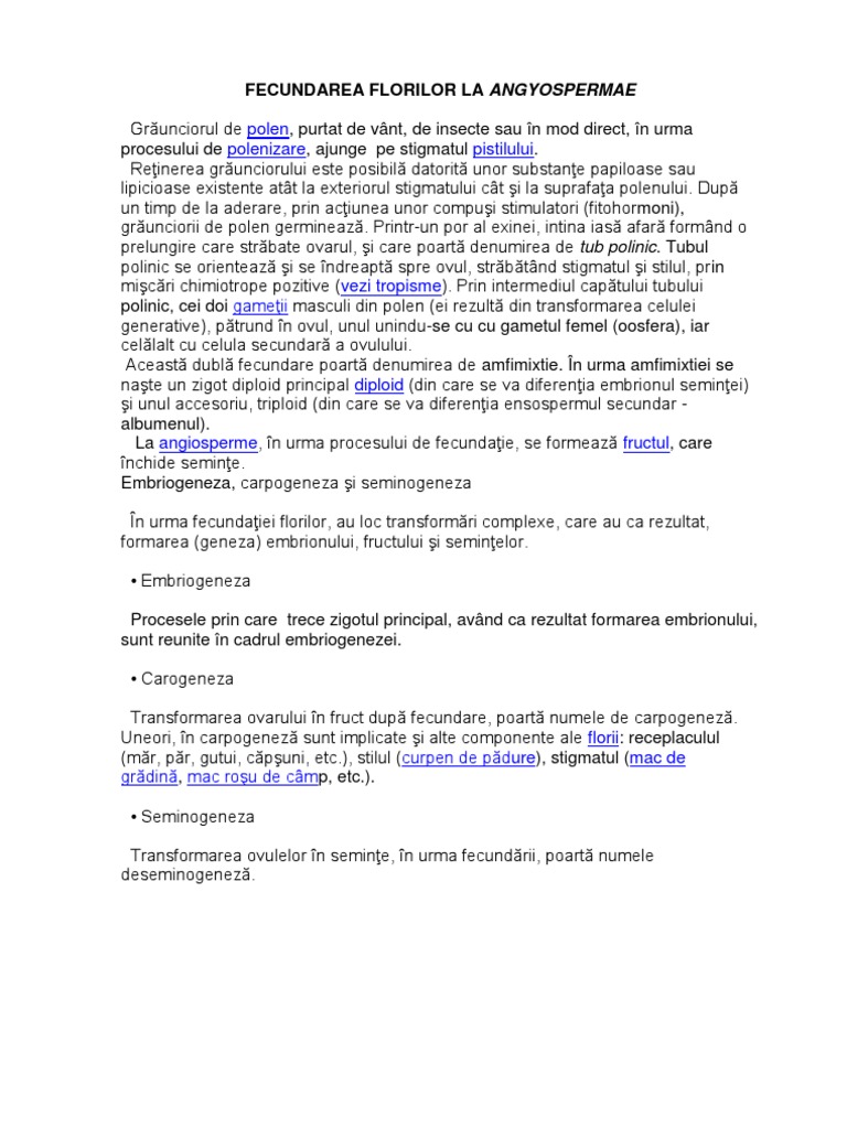 Informatii Despre Fecundatia La Plantele Cu Flori