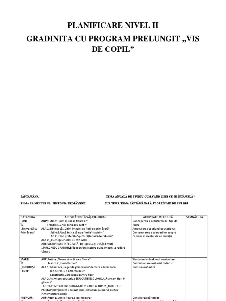 Doc Proiect Tematic Salutare Primăvară Timp Frumos Bine Ai