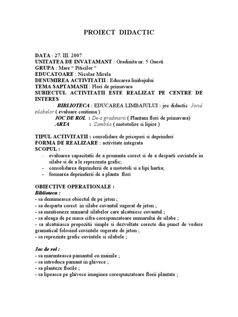 Doc Proiect Didactic Ana Maria Academia Edu